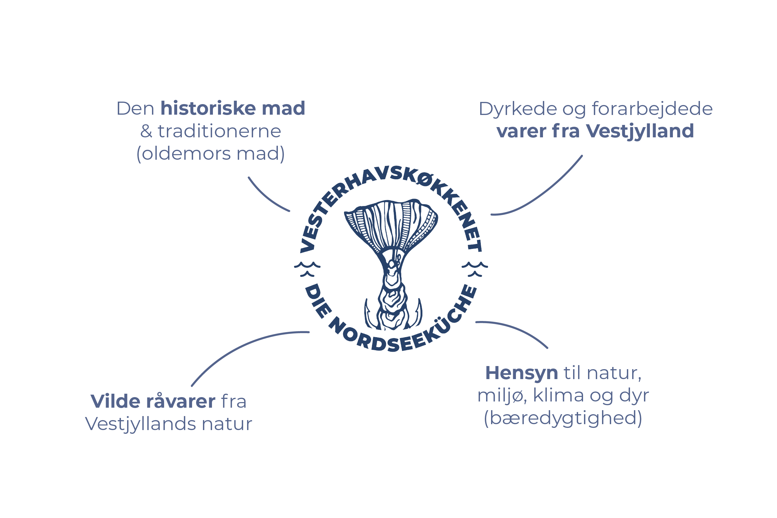 Netværket er skabt for at styrke kendskab og samarbejde mellem vores lokale restauranters og fødevareproducenter. I netværket dyrker vi det lokale og vi bevæger vi os gradvist i retning af et endnu mere lokalt forankret vestjysk køkken og fødevareproduktion, som bygger på naturen, den historiske madkultur og både de dyrkede og vilde råvarer som findes i Vestjylland og i Vesterhavet. Vi kalder både netværket og det lokale køkken for ”Vesterhavskøkkenet” – og det er vi stolte af.